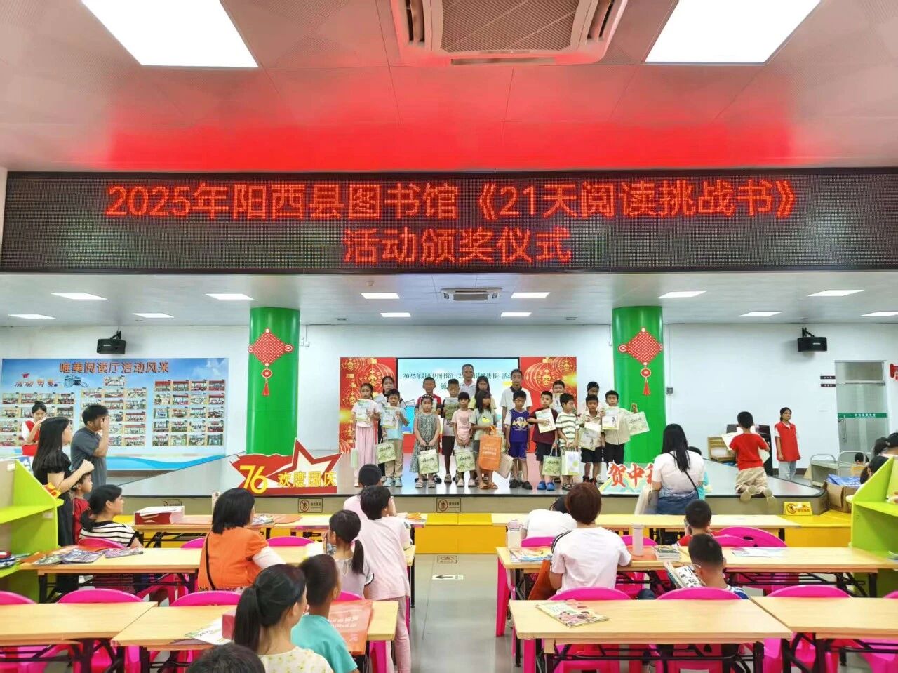 为激发阳西县少年儿童的阅读兴趣,引导他们沉浸书海、培养良好阅读习惯,暑假期间开展了《21天阅读挑战书》活动。这场为期21天的阅读之旅已于2025年10月1日上午,在阳西县图书馆绘本室圆满落幕,并举行了温馨的颁奖仪式,为活动画上了完美的句号。