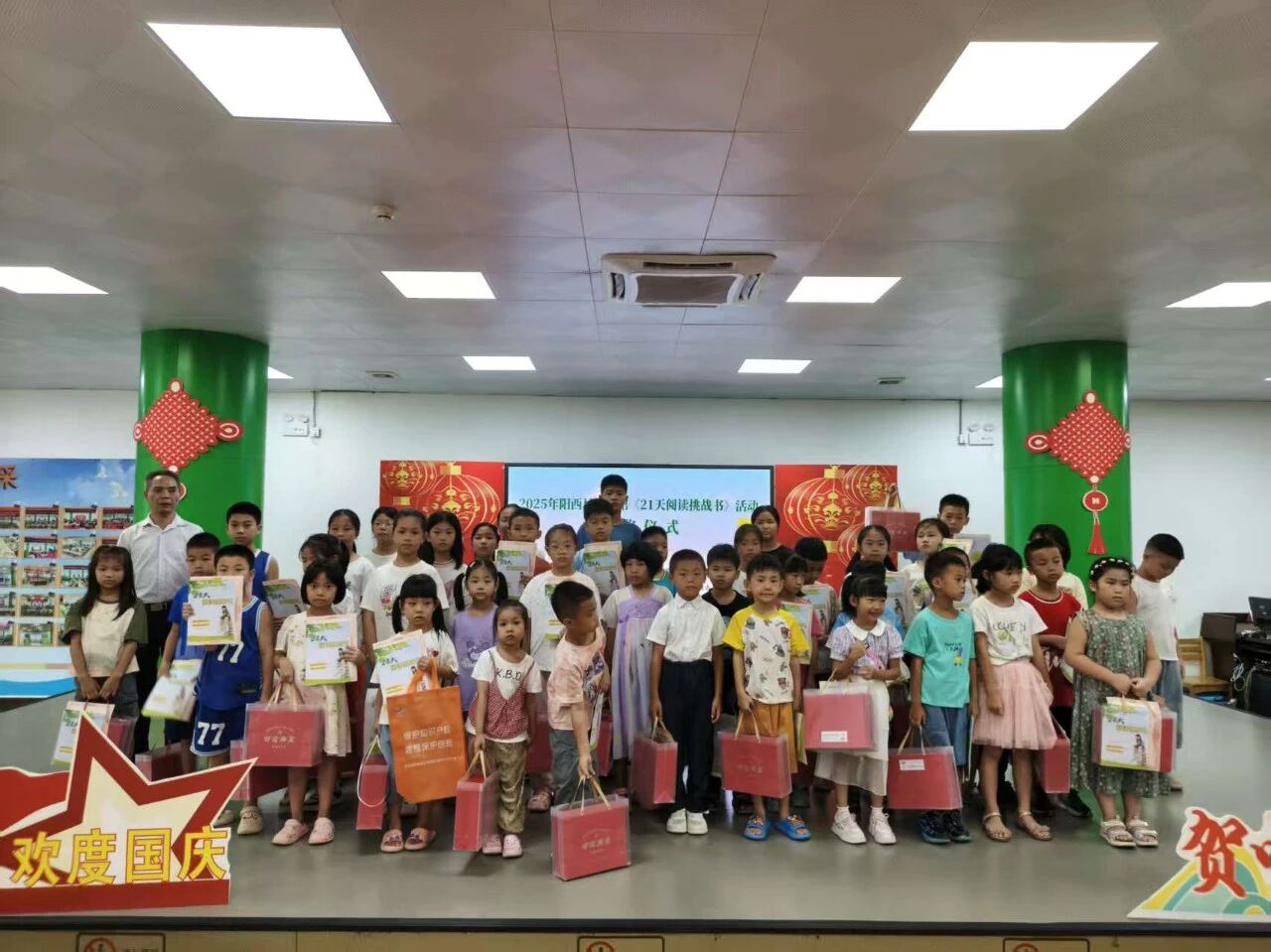 国庆当天的县图书馆内洋溢着喜悦与收获的氛围,我馆为坚持完成挑战的小读者们颁发了荣誉证书与精美礼品,共同分享了这21天来的感悟与成长。